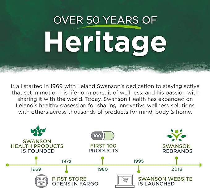 - Our quality commitment: For over 50 years, Swanson has delivered science-backed health products worldwide; Each wellness supplement is made in our GMP certified facilities, and our purity and potency testing includes independent third-party labs