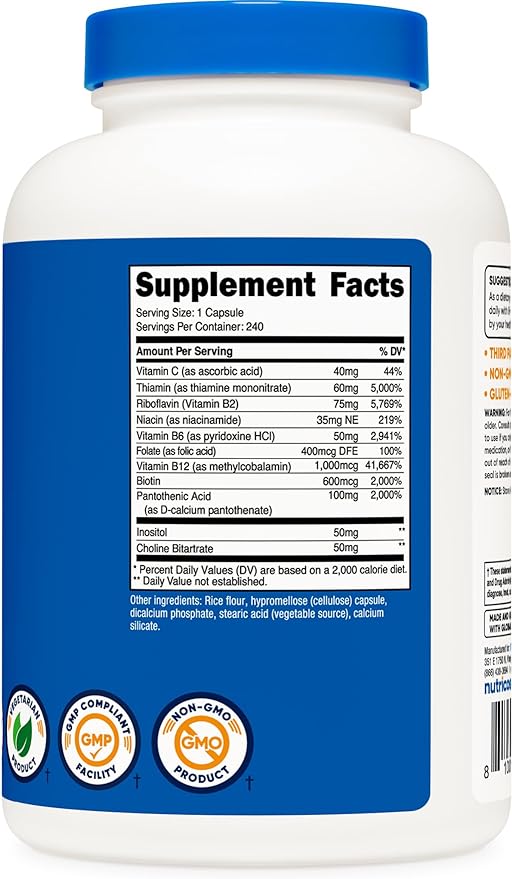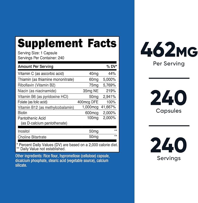 Nutricost Vitamin B Complex 462mg, 240 Capsules - with Vitamin C - Energy Complex