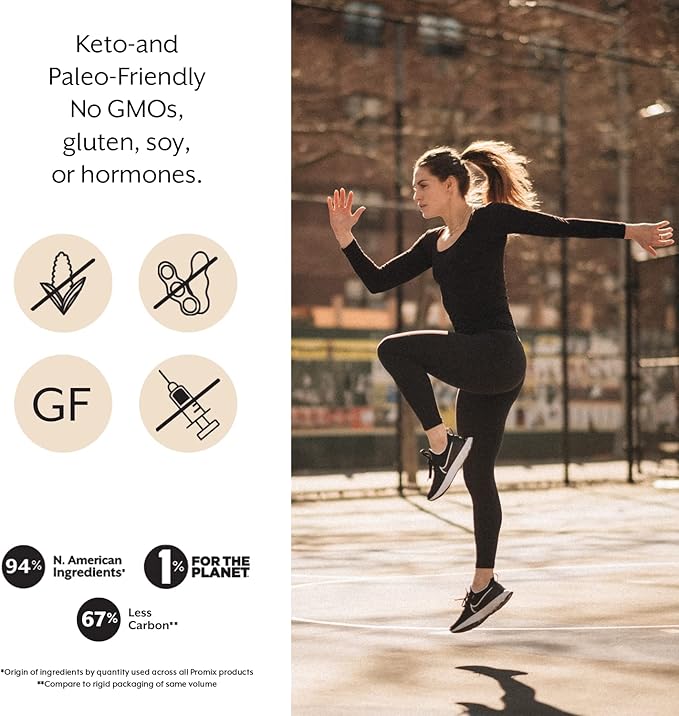 - Seriously Clean: Collagen Peptides are keto- and paleo-friendly. All Promix products are free of gluten, soy, GMOs, hormones, antibiotics, refined sugar, artificial sweeteners, stevia, gums, fillers, and bleach. 94% of ingredients sourced from North America. Partner of 1% for the Planet. Produced in facilities using GMP (Good Manufacturing Practice) standards.