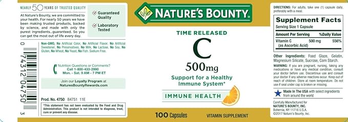 Nature's Bounty Pure Vitamin C 500 mg - 100 Tablets, Pack of 5