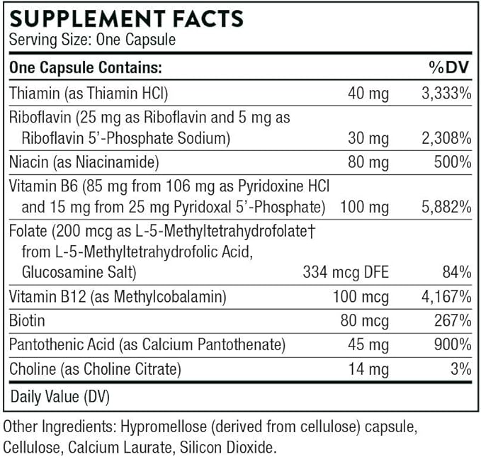 THORNE B-Complex #6 - Vitamin B Complex with Active Forms of Essential B Vitamins and Extra B6-60 Capsules