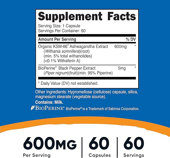 - 600mg of KSM-66 Ashwagandha Root Extract Per Serving (60 Servings)