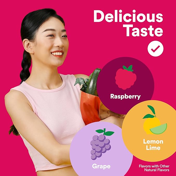 - DELICIOUS TASTE & NON-GMO: Raspberry, Lemon Lime, and Grape Flavors with Other Natural Flavors. Adult women take 4 gummies daily. May be taken with or without food
