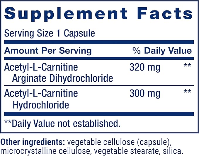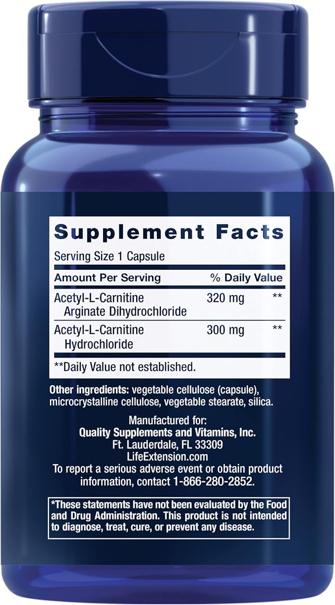 Life Extension Acetyl-L-Carnitine Arginate, Advanced Brain & Nerve Health, Cellular Energy Support, Gluten-Free, Non-GMO, 90 Capsules