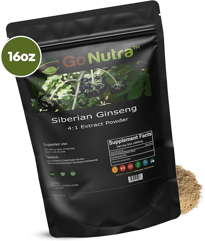 Go Nutra Siberian Ginseng Powder 4:1 Extract 4X Times Stronger Non-GMO 1lb (16 oz) Eleuthero Root