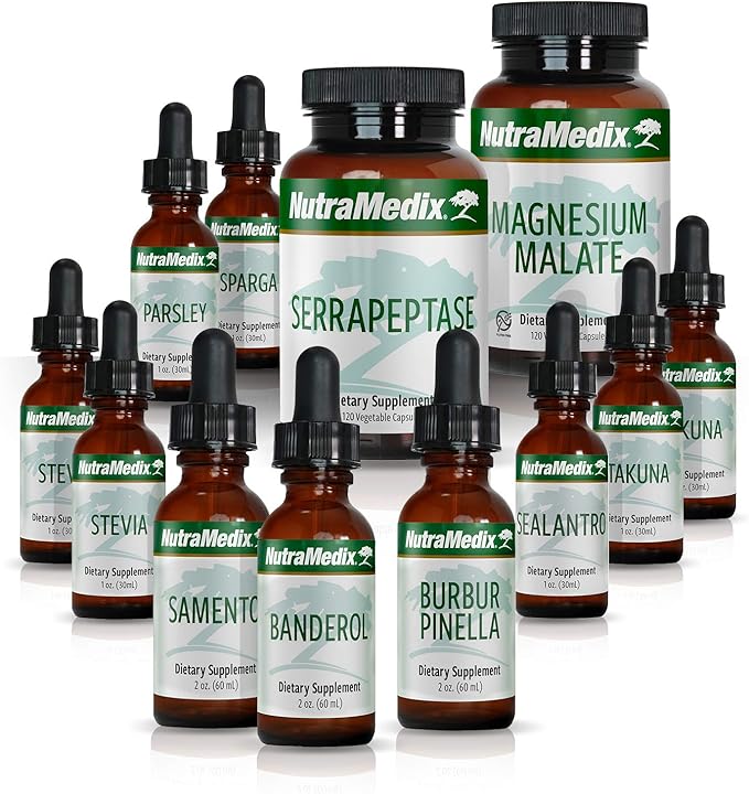 - Included Products - Includes Banderol 2oz, Burbur-Pinella, Magnesium Malate, Parsley, Samento 2oz, Sealantro, Serrapeptase, Sparga, Stevia (2 units), and Takuna (2 units).*