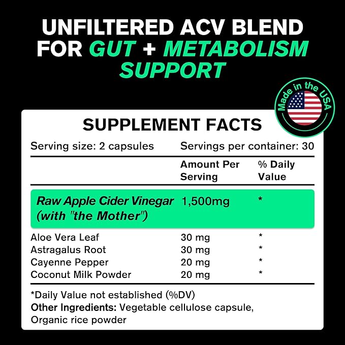 - Up to 3X More Potent: Our capsules contain up to 3x more ACV (1,500mg) and up to 20x more acetic acid (500mg) per 2-capsule serving than ACV gummies. To match our powerful dose, you’d need to take 20 gummies. Plus, our ACV is packed with gut-benefitingenzymes and probiotics from the Mother.