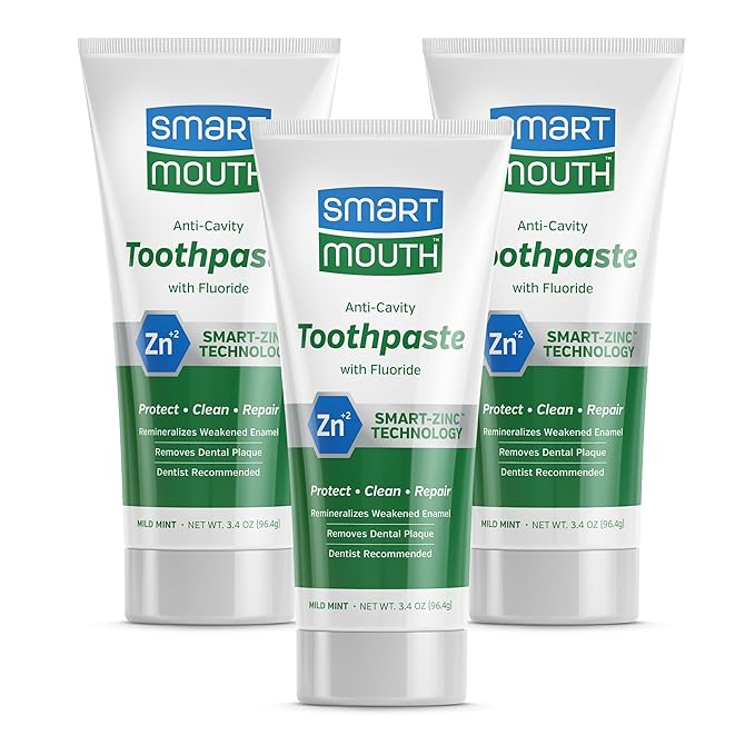 SmartMouth Premium Zinc Ion Toothpaste, Cavity, Enamel, and Plaque Help, Mild Mint, 3.4 oz, 3 Pack