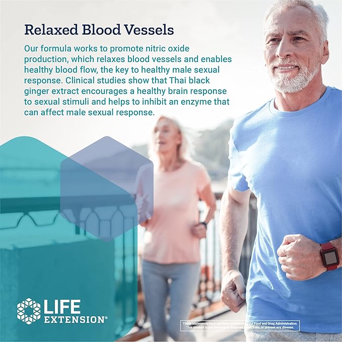 Life Extension Male Vascular Sexual Health Support -Hormone-Free Black Ginger Extract Supplement for Men – One Daily, Gluten-Free, Vegetarian, Non-GMO - 30 Capsules