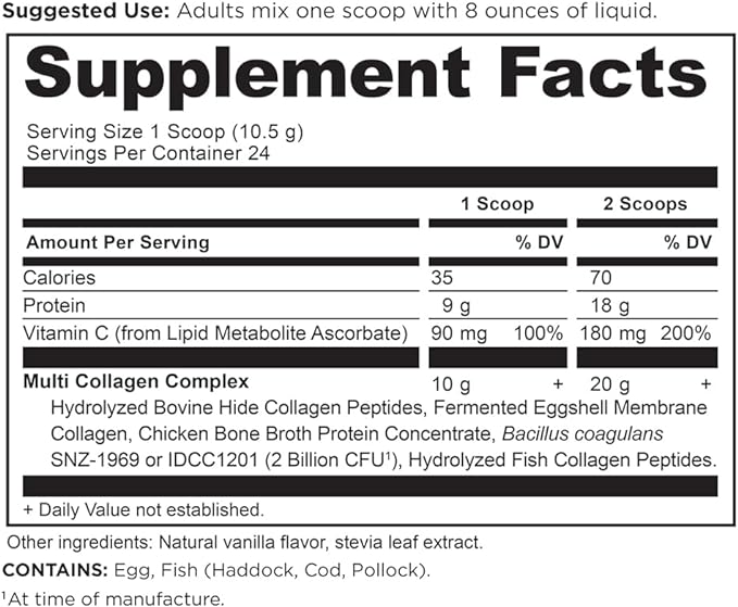 - You will receive (1) tub of Multi Collagen Protein Powder, Vanilla, 24 servings