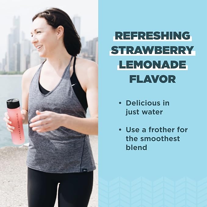 Ancient Nutrition Collagen Powder Protein, Multi Collagen Protein Powder, Strawberry Lemonade, 45 Servings, w/Vitamin C, Hydrolyzed Collagen Peptides for Skin, Nails, Gut Health and Joints, 18.1oz