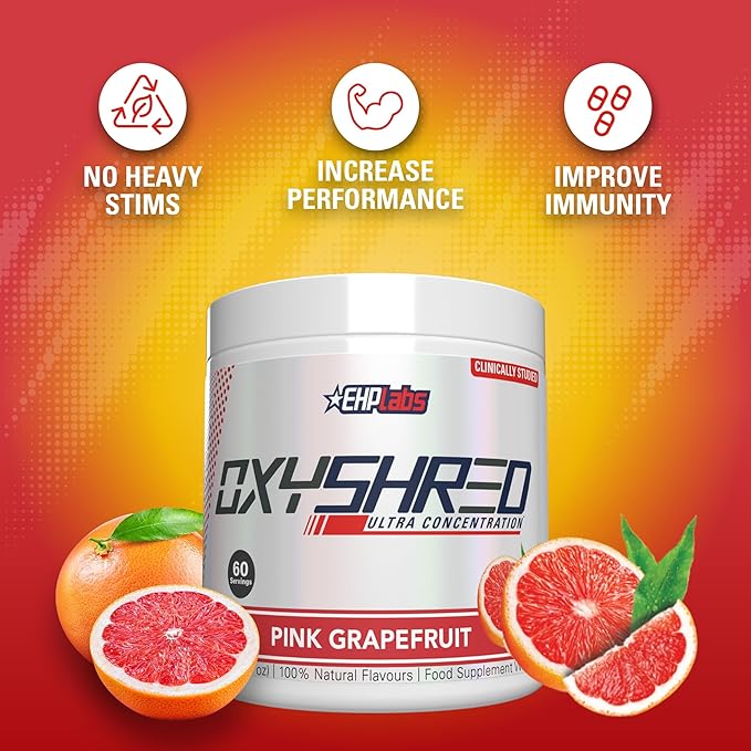 EHP Labs OxyShred Pre Workout Powder - Preworkout Powder with L Glutamine & Acetyl L Carnitine, Energy Boost Drink - Pink Grapefruit, 60 Servings