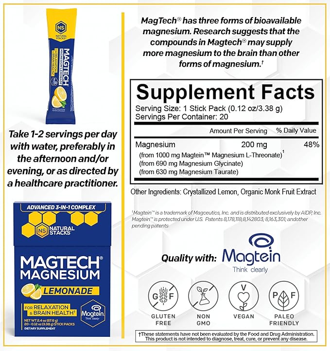 - 🍋 Magnesium Lemonade: Consuming magnesium may support sleep and brain health*. MagTech contains a unique blend of magnesium. The compounds in MagTech may supply more magnesium to the brain than other forms of magnesium.