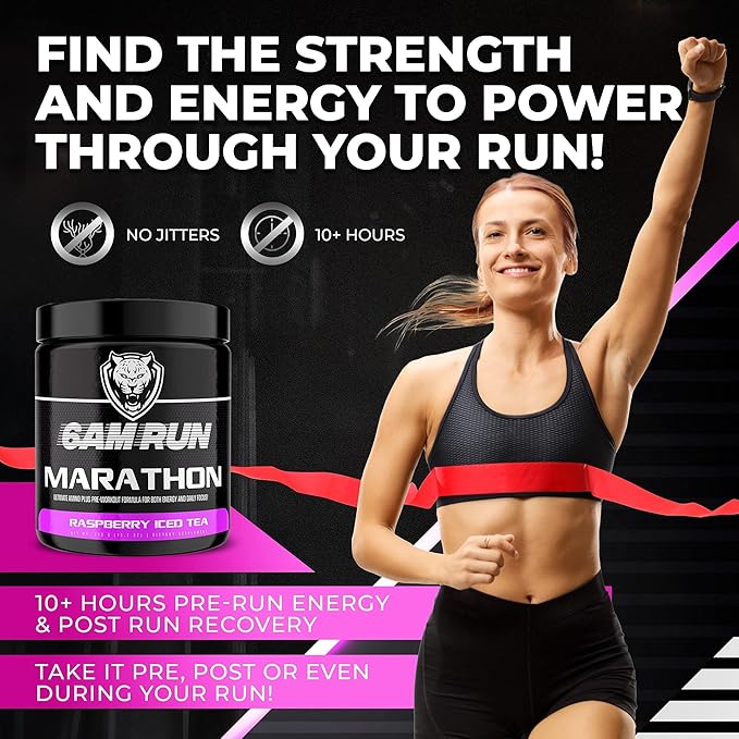 6AM Run Marathon, Pre-Workout Powder for Distance Running, Essential Amino Energy for Cardio & Stamina, All-Natural High-Energy Formula with No Jitters, Raspberry Iced Tea, 40 Servings