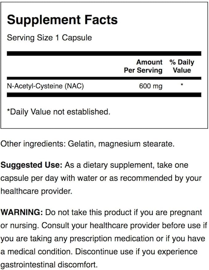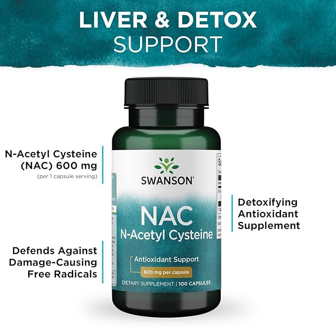 - Primary Supplement Type : Swanson NAC N-Acetyl Cysteine Antioxidant Liver Support & Amino Acids Supplement 600 mg 100 Capsules Swanson NAC N-Acetyl Cysteine Antioxidant Liver Support & Amino Acids Supplement 600 mg 100 Capsules