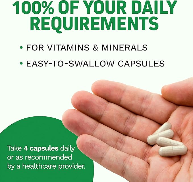 - 100% Of Your Daily Nutrition: Meet your daily requirements for numerous vitamins and minerals with our convenient vegan capsule and sophisticated combination of plant and food based ingredients for optimal daily vitamin nutrition.