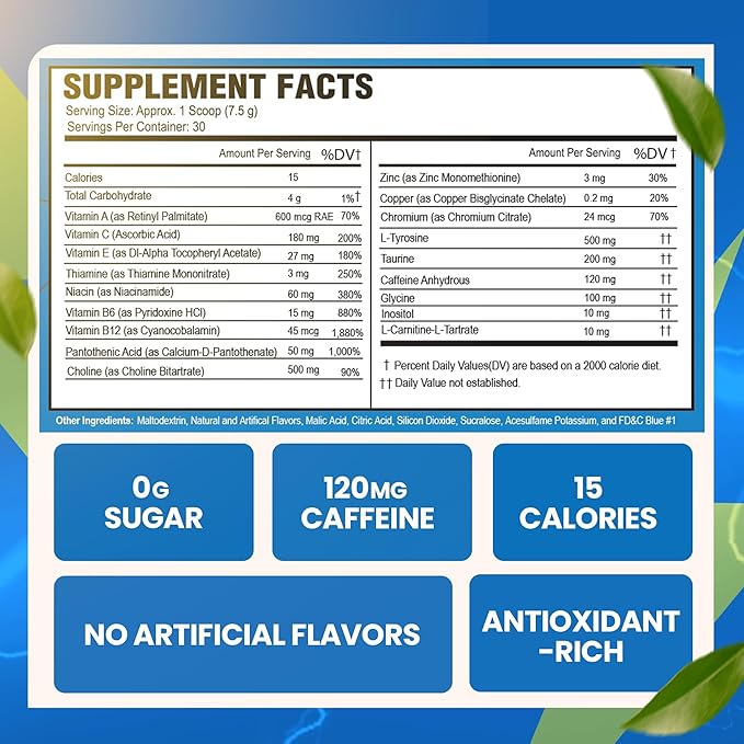Morning Buzz Energy Drink Powder - Energy Boost Drink Mix - Sugar-Free Energy with Antioxidants - Morning Kickstart and Sports Nutrition Endurance Product - 30 Servings, Blue Raspberry, 8 Ounces