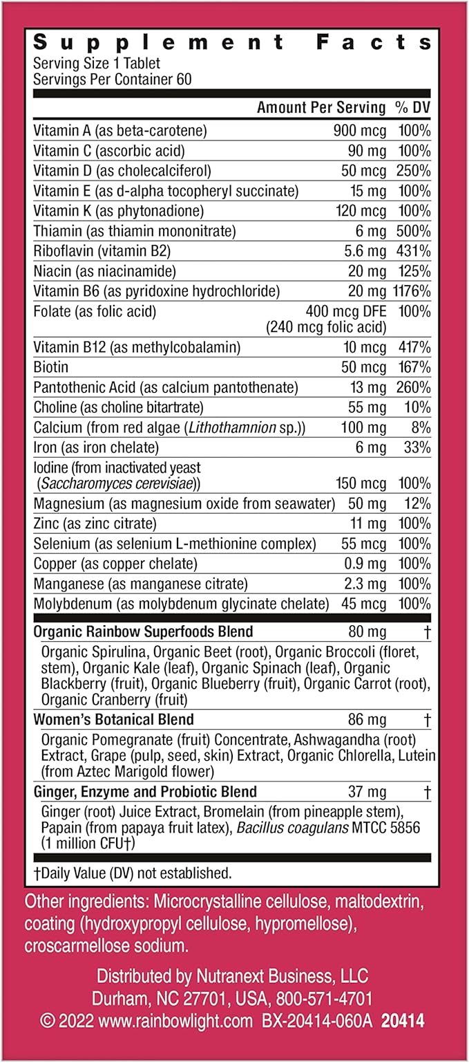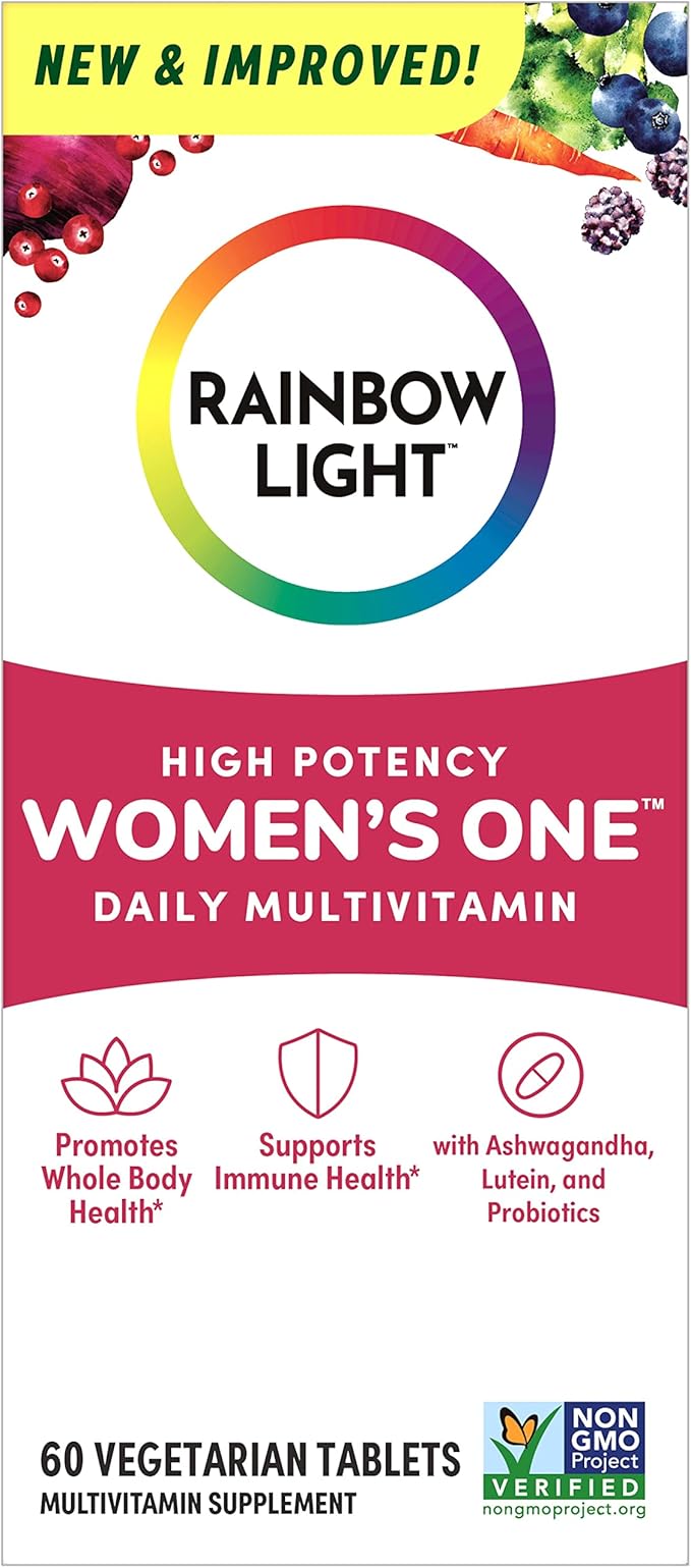 Rainbow Light Womens One High-Potency Daily Multivitamin, Womens Multivitamin Provides High-Potency Immune Support, With Vitamin C, Biotin and Ashwagandha, Vegetarian, 60 Count