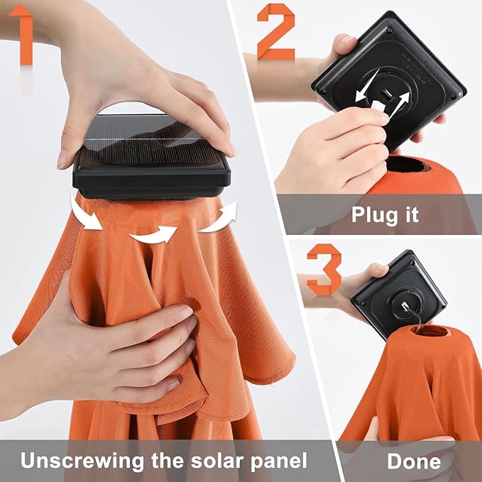 - ★ Hassle-free setup and storage with a detachable pole and crank handle; NOTICE: Please check the plug connection by unscrewing the solar panel before use, and the solar panel should be exposed to sun for 6-9 hours . If the light still not work, please contact us, we will solve this problem for you. Umbrella base not included