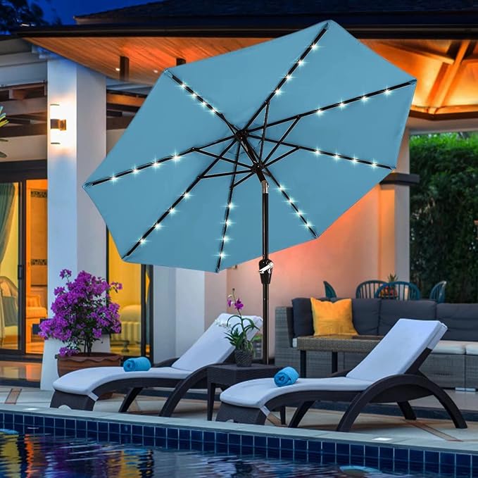 ABCCANOPY Durable Solar Led Patio Umbrellas with 32LED Lights 9FT (Turquoise)