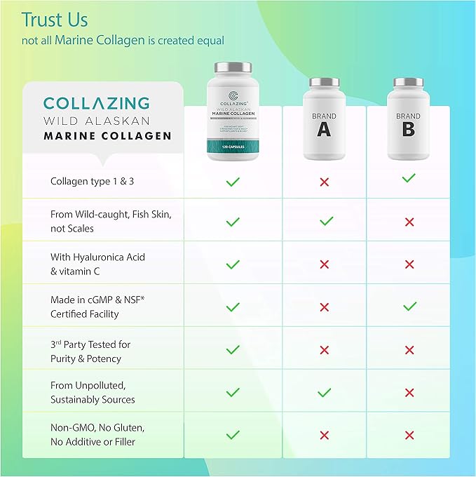 - RADIANT SKIN & HAIR: Infused with Hyaluronic Acid and Vitamin C, our Marine Collagen Capsules work synergistically to enhance hydration, elasticity, and overall skin tone, leaving you with a luminous complexion and fuller, healthier hair.