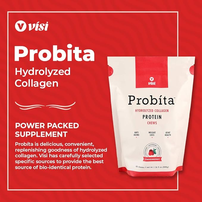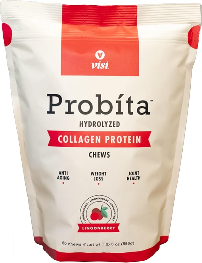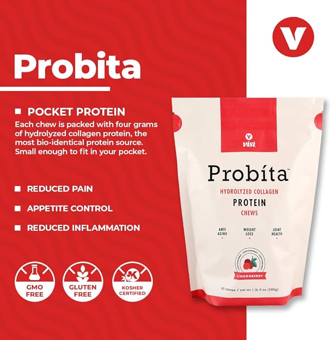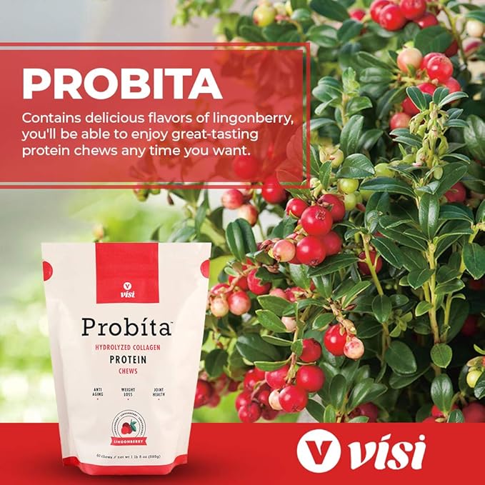 VISI Probita Hydrolyzed Collagen Protein Chews - 60 Chews - Non GMO (Lingonberry)