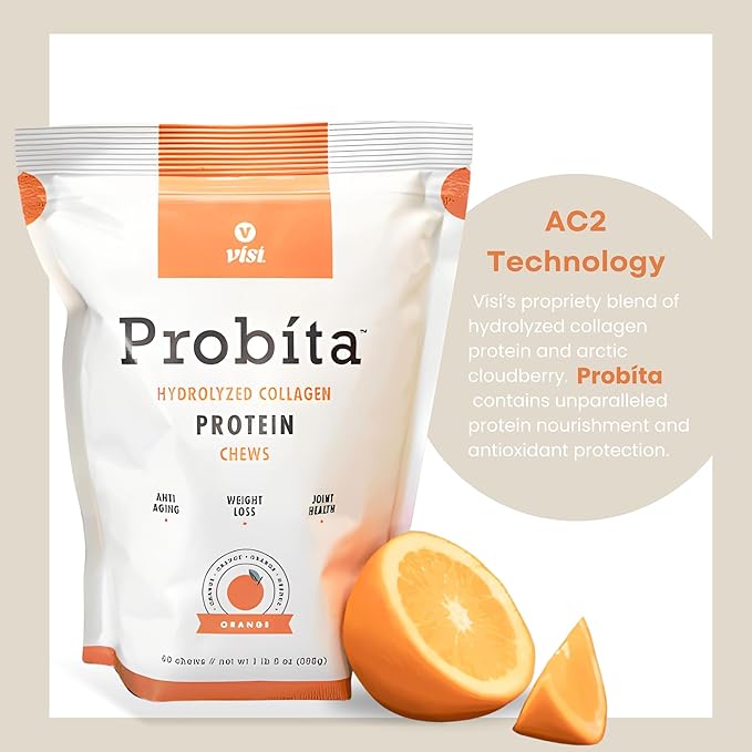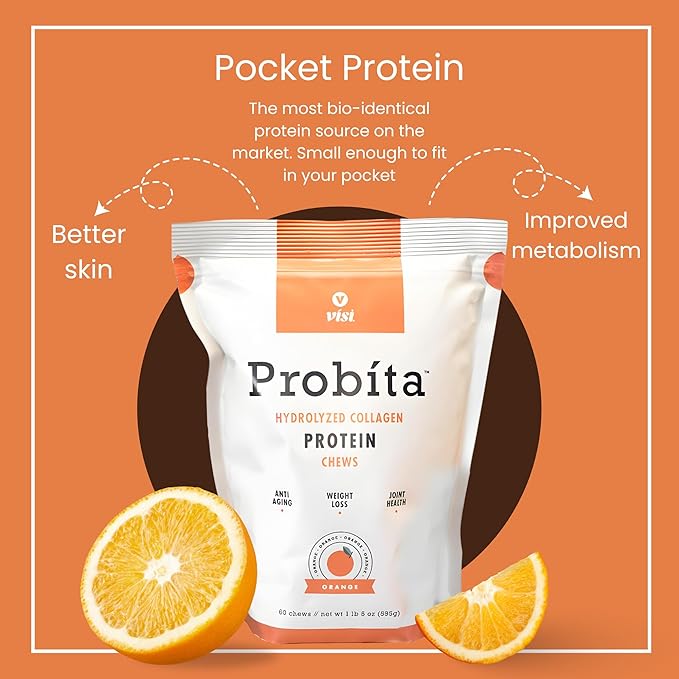 VISI Probita Hydrolyzed Collagen Protein Chews - 60 Chews - Non GMO (Orange)