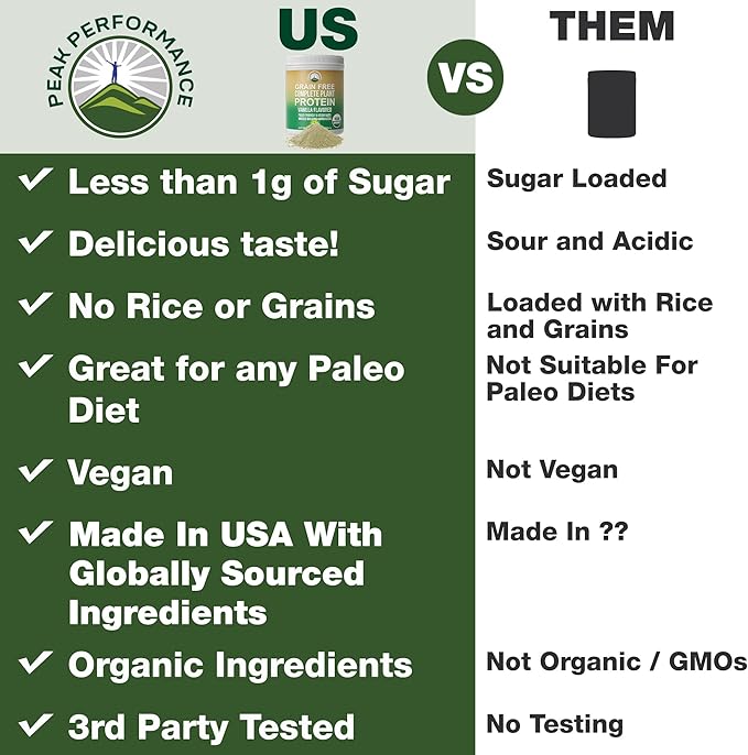 - Not All Plant Proteins Are Created Equal - Many plant protein supplements on the market are rice based or heavy on grains and just altogether insufficient in their amino acid profile to build lean muscle. Until now. With Peak Performance Complete Organic Plant Protein you can get a diverse blend of plant protein amino acids that are rich in antioxidants, fibers and omega 3’s to promote muscle building + lean muscle tissue and help maintain a healthy immune system.