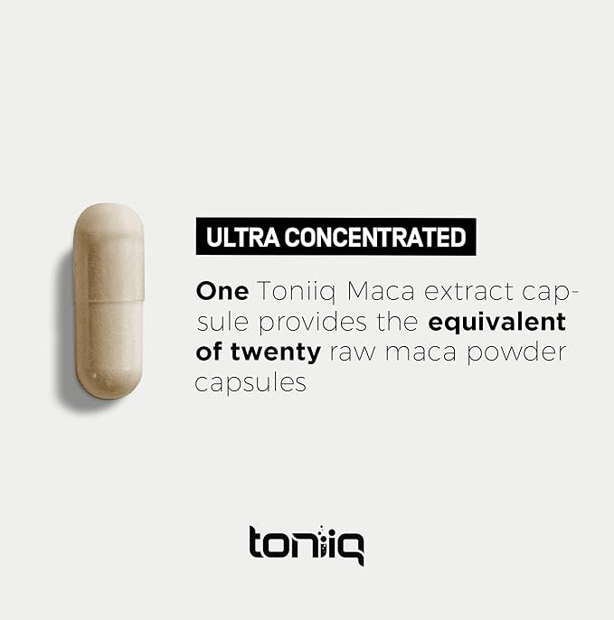 Toniiq 10,000mg 20x Concentrated Extract - Single Origin Wildcrafted Maca Root Capsules - Ultra High Strength - Highly Purified Peruvian Maca Root Powder - Black, Red and Yellow Maca Complex