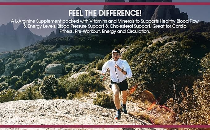 - HEALTHY COMBO: A L-Arginine Supplement packed with Vitamins and Minerals to Supports Healthy Blood Flow & Energy Levels. Blood Pressure Support & Cholesterol Support. Great for Cardio Fitness, Pre-Workout, Energy and Circulation. A Non-GMO, Vegetarian, Gluten Free & Dairy Free.