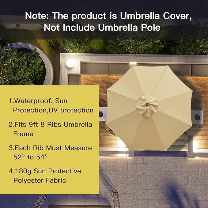 - Fits 9ft 8 ribs umbrella frame. Each rib must measure 52" to 54", please measure your umbrella rib length before purchase. (Please note that this product does not contain umbrella frame)
