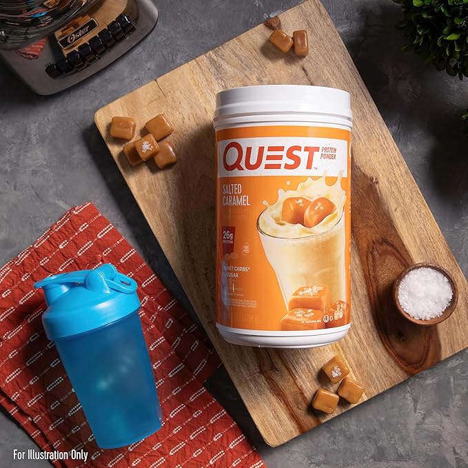 - SHAKE UP YOUR ROUTINE: Quest Salted Caramel Protein Powder provides you with a delicious protein boost with 26g protein, 3g net carbs and 1g of sugar per scoop*.