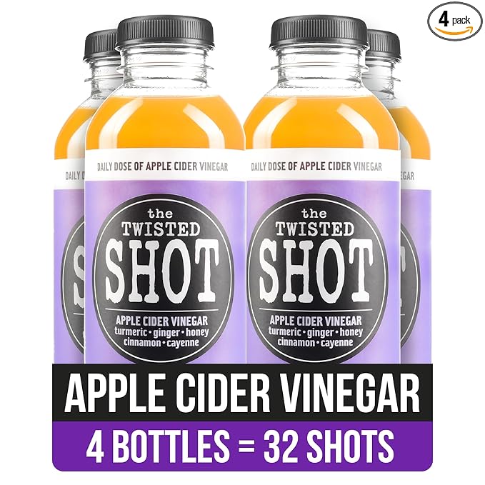 The Twisted Shot | Apple Cider Vinegar Wellness Shots with Honey, Cinnamon, Ginger and Turmeric | Digestion, Immunity and Gut Health Support | Ready to Drink Shots | 100% Organic | 4, 16 oz Bottles