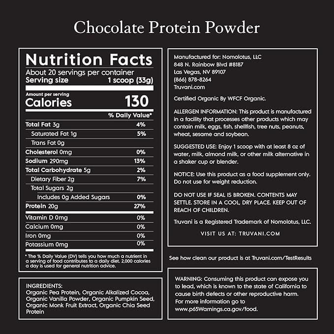- Clean Formula, Free of Additives & Fillers: Experience pure nutrition with Truvani plant-based protein powder, free from artificial sweeteners, useless additives, and weird fillers. Our formula excludes soy, wheat, dairy, gluten, and stevia, ensuring a clean and wholesome blend. Enjoy the sweetness of organic monk fruit without added sugars.