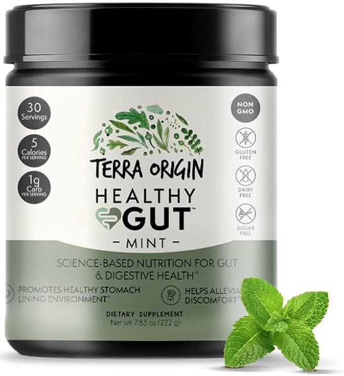 TERRA ORIGIN Healthy Gut Mint Flavor |30-Servings with L-Glutamine, Zinc, Glucosamine, Slippery Elm Bark, Marshmallow Root and More!