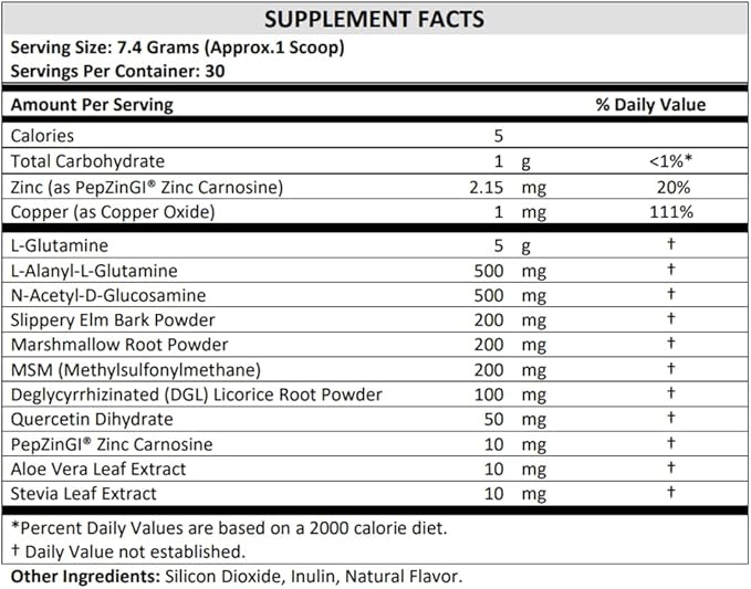 - SUPPORTS DIGESTIVE HEALTH: Terra Origin Healthy Gut Powder is designed to alleviate stomach discomfort and improve digestion. Featuring PepZinGI (Zinc Carnosine), L-Glutamine, Glucosamine, and herbal extracts like Slippery Elm Bark and Marshmallow Root, it soothes the digestive tract and promotes stomach comfort by reducing bloating and cramping.