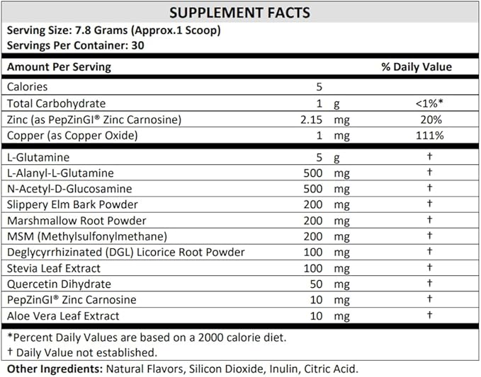 - SUPPORTS DIGESTIVE HEALTH: Terra Origin Healthy Gut Powder is designed to alleviate stomach discomfort and improve digestion. Featuring PepZinGI (Zinc Carnosine), L-Glutamine, Glucosamine, and herbal extracts like Slippery Elm Bark and Marshmallow Root, it soothes the digestive tract and promotes stomach comfort by reducing bloating and cramping.