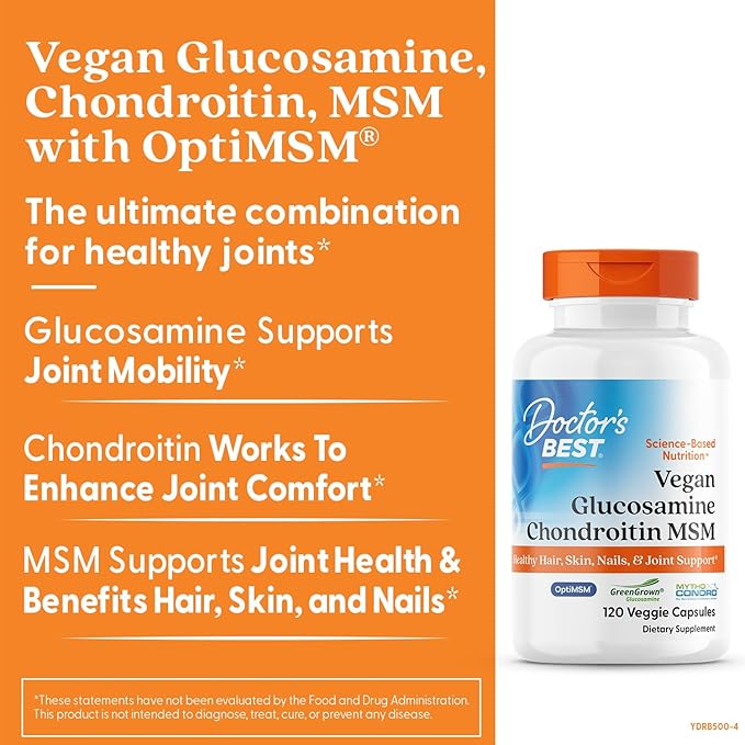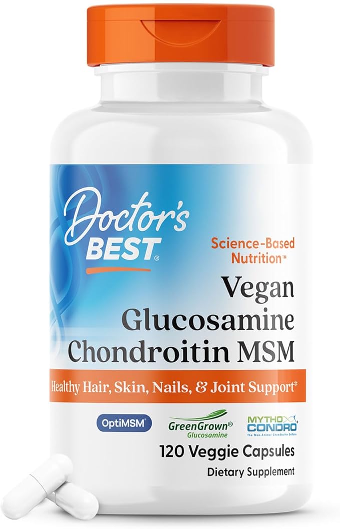 Doctor's Best Vegan Glucosamine Chondroitin MSM, Joint Health, Hair, Skin & Nails, Capsule,120 count