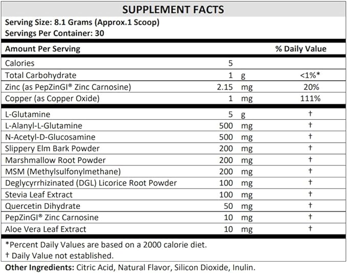 - SUPPORTS DIGESTIVE HEALTH: Terra Origin Healthy Gut Powder is designed to alleviate stomach discomfort and improve digestion. Featuring PepZinGI (Zinc Carnosine), L-Glutamine, Glucosamine, and herbal extracts like Slippery Elm Bark and Marshmallow Root, it soothes the digestive tract and promotes stomach comfort by reducing bloating and cramping.