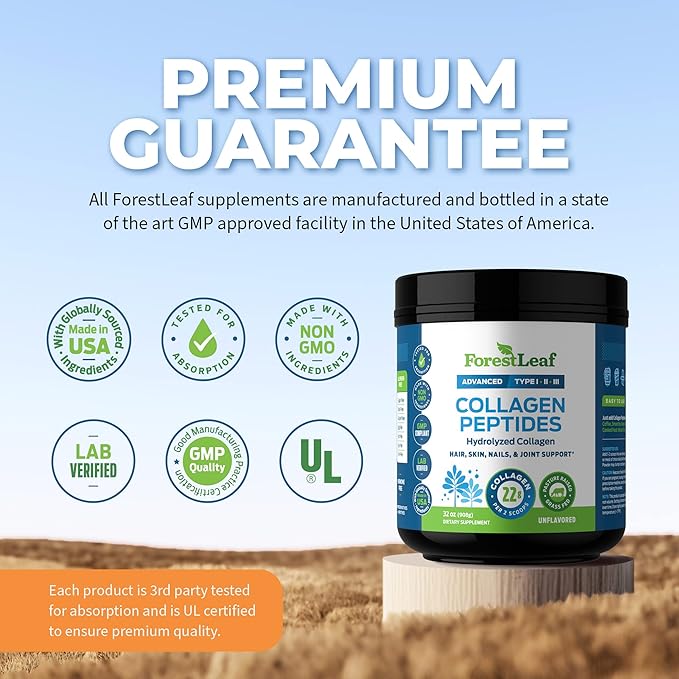 - 100% Customer Satisfaction Guarantee - We take pride in our Non-GMO, GMP compliant, Made in USA lineup of advanced health supplements. There’s always something here for everyone. Not a fan of collagen peptides powder? Don't worry. Unflavored collagen isn't necessarily flavorless, and this additive-free powder may not be suited to everyone's palate. We'll be happy to issue a refund and recommend ForestLeaf Advanced Collagen Capsules with Type 1, 2 and 3 collagen instead.