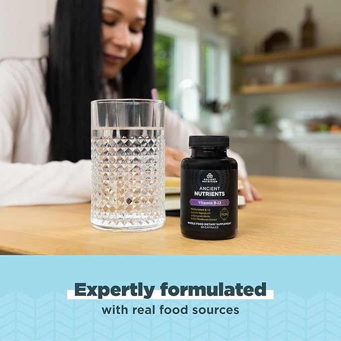 Vitamin B12 Supplement by Ancient Nutrition, Supports Energy Metabolism and Nervous System Health, Adaptogenic Herbs, Enzyme Activated, Paleo & Keto Friendly, 30 Capsules