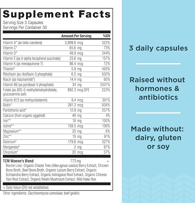 - TCM WOMEN’S BLEND- Our Traditional Chinese Method blend is based off of a Chinese tradition using herbs that have been around for more than 2,000 years. This blend contains Organic Dong Quai Root extract and Organic Chaste Tree Berry extract. We also added Bovine liver and Wild Hake Roe, which are considered some of the most nutrient-dense foods on this planet, as well as collagen-rich bone broth and lycium berry as an antioxidant.