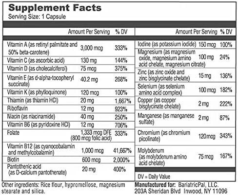 - 100% of the daily value for 20 essential vitamins and minerals. Formulated based on the latest ASMBS guidelines.