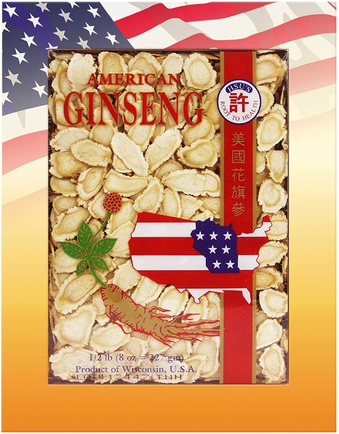 Hsu's American Ginseng Slices | Wisconsin-Grown Premium Sorted Slices | Medium Slices (126LL-8) | 8oz Box (8 oz, Medium Slices)