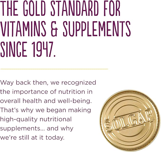 - The Gold Standard; For over 70 years Solgar has been committed to quality, health, and well-being. Our mission is to create the finest nutritional supplements in small batches, through tireless research, using only the finest raw materials