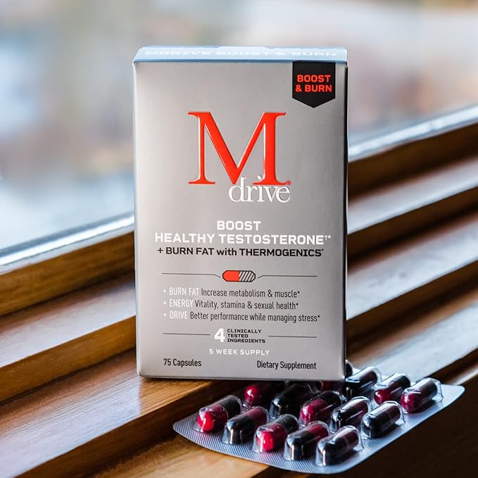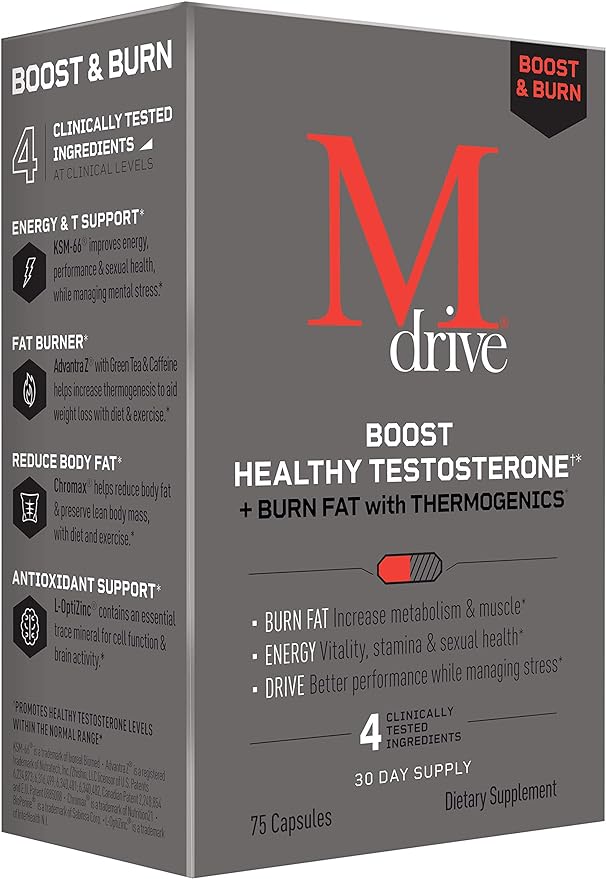 Mdrive Boost and Burn Test Booster and Fat Burner with Zinc, KSM-66 Ashwagandha, Advantra Z, 75 Count.
