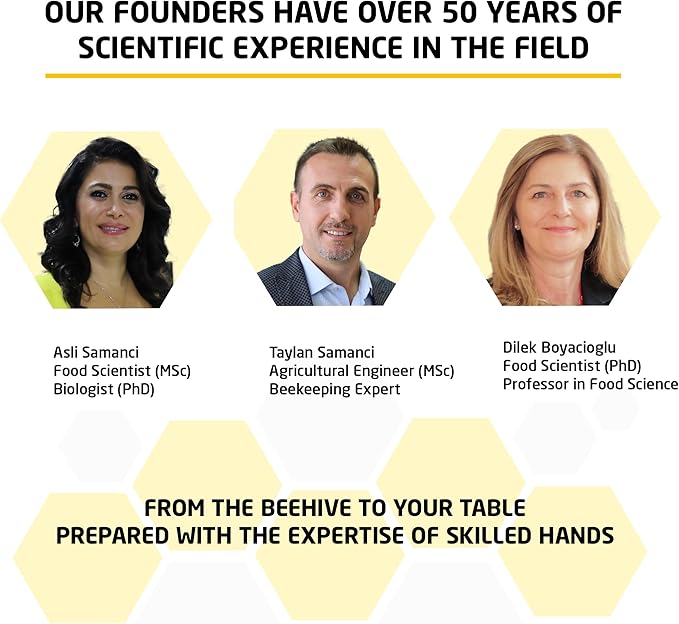 - Pure, Sustainably Sourced and Fair Trade: Produced by “Contracted Beekeeping” to assure the highest quality and traceability from our hives to your table. Also tested for purity, antioxidant content and compliance with food safety standards. No GMOs, No chemicals, No artificial No colors, No sweeteners, No gluten, No soy, No dairy, No sugar added, No Gelatin. Our factory is periodically audited by accredited third party “DQS GmbH in Germany” and our latest audit score is 98.06 over 100. Made in Türkiye. KTUN: 8683813003288