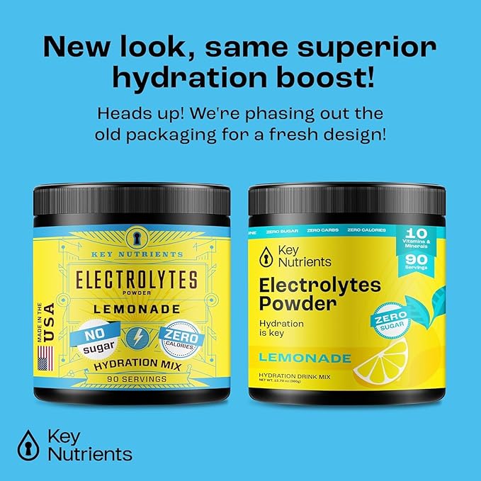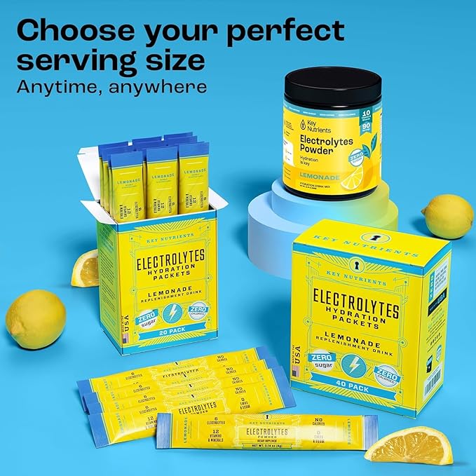 KEY NUTRIENTS Multivitamin Electrolytes Powder No Sugar - Refreshing Lemonade Electrolyte Powder - Sodium & Energy Supplement - Hydration Powder - No Calories - 90 Servings - Made in USA