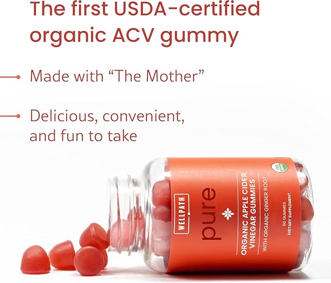 - [WellPath - High-Quality and Trusted] Our Pure ACV gummies are USDA organic, vegan, IGEN non-gmo tested, gluten free, and gelatin free with a pectin base. It is third-party tested and manufactured in a GMP certified facility.