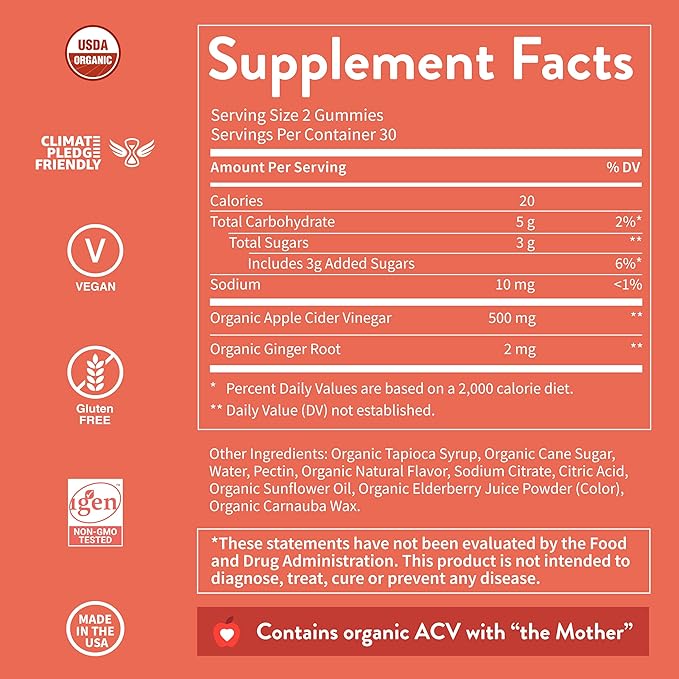 - [Pure Organic Apple Cider Vinegar Gummies] Designed to support your overall wellness. These delicious USDA Organic gummies contain apple cider vinegar with 'the mother' and acetic acid, which may help cleanse your body.